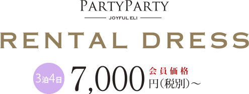ジョイフル恵利が運営するパーティパーティのパーティードレスレンタル衣装は、3泊4日からネットレンタルでも全国配達可能。