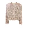 | 商品説明 | 柔らかいピンクのジャケットは、年齢を問わずご着用いただけるデザイン。ピンクの中にほんのりブルーやグリーンの糸も織り込まれた優しげな色合いです。 衿ぐりや前立て、裾、袖口のレースや細部までこだわったボタンが贅沢な印象です。 |