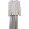 | 商品説明 | 淡いシルバーのジャケットは、袖にほんのり透け感があるので長袖でも軽やか。 シャンタンのロングスカートは、落ち着きのある光沢でコーディネートしやすいデザイン。シルエットも細すぎず動きやすいです。 |